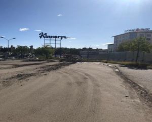 Den ”blå väggen” tillika ljudbarriär och dammskydd riven och till stora