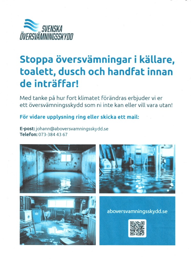Om du är intresserad av åtgärder för din fastighet kontakta Johann Gustafsson på Svenska Översvämningsskydd för mer information.